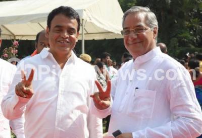 Photo Caption : BJP MLA Ashwath Narayana and MLC Lehar Singh during BS Yeddyurappa newly elected Chief Minister of Karnataka swearing ceremony at Raj Bhavan, in Bengaluru on Thursday 17th May 2018