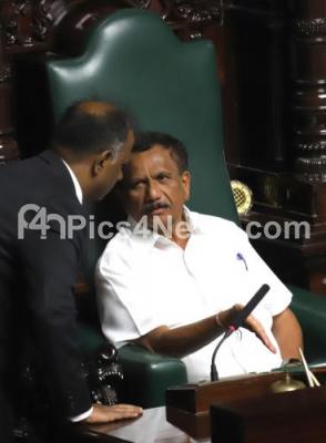 Photo Caption : KG Boppaiah, Pro tem Speaker seen at Assembly hall, Vidhana Soudha, following vote of confidence of Chief Minister BS Yeddyurappa, in Bengaluru on Saturday 19th May 2018