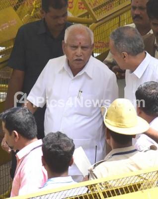 Photo Caption : Chief Minister of Karnataka BS Yeddyurappa arrived at Vidhana Soudha, following vote of confidence of Chief Minister B S Yeddyurappa, in Bengaluru on Saturday 19th May 2018