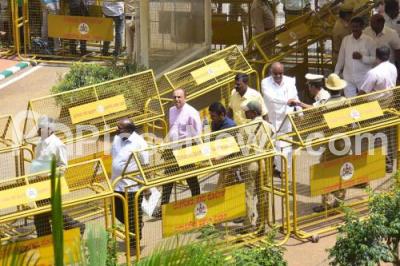 Photo Caption : JDS State President H D Kumarswamy and its party MLAs arrived at Vidhana Soudha, following vote of confidence of Chief Minister B S Yeddyurappa, in Bengaluru on Saturday 19th May 2018