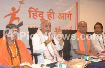 Praveen Togadia, VHP Leader with Pramod Muthalik, Sri Rama Sena leader and others seen at the Hindu Leaders Meeting at Hotel Sanctum, Sheshadri Road, in Bengaluru on Monday 21st May 2018