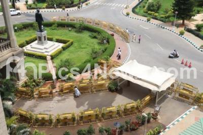Photo Caption : Police barricades put up for the upcoming Karnataka Chief Minister swearing ceremony in front of Vidhana Soudha, in Bengaluru on Monday 21st May 2018