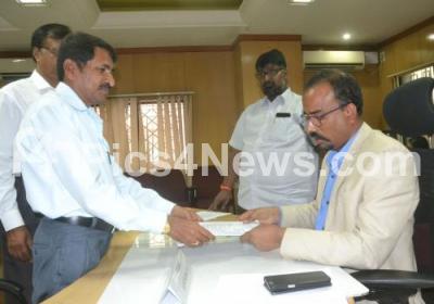 Photo Caption : K Kumaraswamy, candidate for Bangalore Graduate Teachers Constituency, filing his nomination for Member of Legislative Council (MLC) at Shantinagar Regional Commissioner Office, in Bengaluru on Tuesday 22nd May 2018