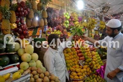 Photo Caption : Muslims shopping fruits at Russel Market in Shivajinagar on the occasion of holy month of Ramzan, in Bengaluru on Tuesday 22nd May 2018