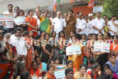 BJP State President and Former CM of Karnataka BS Yeddyurappa with MPs Shobha Karandlaje, PC Mohan with BJP State Leaders protesting against the alliance of JDS and Congress as they observe Anti People Mandate Day, in Bengaluru on Wednesday 23rd May 2018