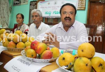 Photo Caption : KM Parashivamurthy, Additional Director with Dr CG Nagaraju, MD, Karnataka state mango developments and S Shyamala , Prof GKVK and others addressing press conference about Mango and Jackfruit Mela which will be held on 25th May at Lalbagh, in Bengaluru on Wednesday 23rd May 2018