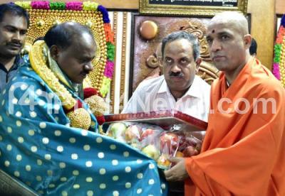 Event Description : CM HD Kumarswamy met Sri Nirmalananda Swami of Adichunchanagiri Mutt at Adichunchanagiri Mutt in Vijayanagar, in Bengaluru on Thursday 24th May 2018