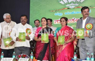 Photo Caption : K Ratna Prabha, IAS, Chief Secretary, Govt of Karnataka with Dr Shalini Rajneesh, IAS, HK Ramu and others releasing a brochure during the inauguration of the Diamond Jubilee Celebration of Karnataka Government Secretariat and Gazetted Officers Association at Vidhana Soudha, in Bengaluru on Saturday 26th May 2018