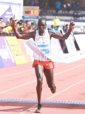 Photo Caption : Winner (C) Geoffry Kamworor from Kenya in action in International Elite Men category during TCS World 10K Bengaluru Run, in Bengaluru on Sunday 27th May 2018