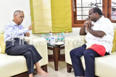 Photo Caption : Chief Minister of Karnataka HD Kumarswamy met Infosys Founder NR Narayana Murthy at his Residence, in Bengaluru on Friday 1st June 2018