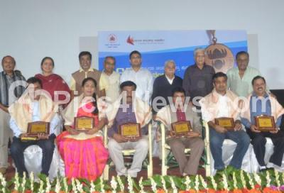 Photo Caption : Dr Chandrashekhar Kambar with Dr PS Harsha, IPS, Dr SG Siddaramaiah, Dr Hamsalekha, SV Rajendra Singh Babu and others felicitated the National Film Awardees NR Nanjundegowda, AS Puttaraju, Kavitha Raj, Abahaya Simha, Nityananda Pai and JM Prahalad at Chamundeshwari Studio, organised by Karnataka Film Academy, in Bengaluru on Saturday 2nd June 2018