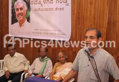 Photo Caption : Prof Chandrashekar Patil with Dr Vijaya, Dr K Satyanarayana, Prof Mallikarjuna Hiremata at the discussion programme of "Nammolagina Giraddi" at Ravindra Kalakshetra, in Bengaluru on Sunday 3rd June 2018