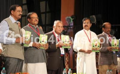 Photo Caption : V R Sudarshan, Former Council Chairman with M S Srinivas Murthy, President, Prof E S Shivakumar , Prof G Mallepuram Venkatesh, and Former Minister B J Puttaswamy releases book “ Dharma Jyothi†during centenary programme of Jyothi Nagara Vyshya Sri J B Kempanna Shettar Dharma Samste at Town Hall, in Bengaluru on Sunday 3rd June 2018