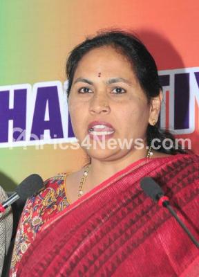 Photo Caption : MP Shobha Karandlaje addressing press conference at BJP office, in Bengaluru on Thursday 7th June 2018