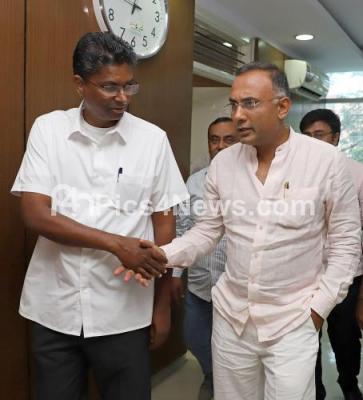 Photo Caption : MLA Satish Jarkiholi visit to MLA Dinesh Gundu Rao office, in Bengaluru on Friday 8th June 2018
