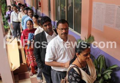 Photo Caption : Teachers cast their votes for the MLC Bangalore Graduate Constituency at VV Puram voting centre, in Bengaluru on Friday 8th June 2018