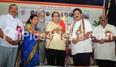 Ra Vijaya Samartha, President, Bangalore City Zilla Chutuku (Small) Sahitya Parishat with Dr.M G R Urs, Dr Wooday P Krishna President 11th Chutuku (small) Sahitya Sammelana, N Shadakshari, President, Ramanashree Institues and Wrter S V Gundu Rao during the inauguration of 11th Chutuku (small) Sahitya Sammelana at Kannada Sahitya Parishat, in Bengaluru on Sunday 10th June 2018