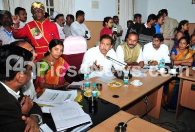 Photo Caption : Deputy CM Dr G Parameshwara with Mayor Sampath Raj, Deputy Mayor Padmavati Narasimhamurthy and councilors and BBMP officials during a meeting at BBMP, in Bengaluru on Monday 11th June 2018