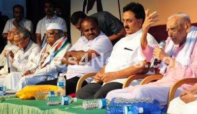 Photo Caption : CM HD Kumarswamy and Freedom Fighter HS Doreswamy interacting during a programme at Gandhi Bhavan, in Bengaluru on Monday 11th June 2018