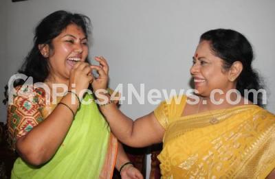 Photo Caption : Congress candidate Sowmya Reddy with mother celebrating after winning the Jayanagar assembly constituency election, in Bengaluru on Wednesday 13th June 2018