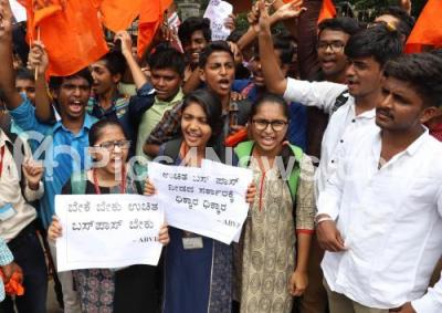 Photo Caption : Members of ABVP staged a protest, demanding for free bus passes for students at Anand Rao Circle, in Bengaluru on Thursday 14th June 2018