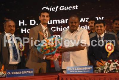 Photo Caption : CM HD Kumarswamy being welcomed by CA Shravan Guduthur and others during the 15th Karnataka State Level CAs Conference at Jnana Jyothi Auditorium, organised by Bangalore Branch of SIRC of ICAI, in Bengaluru on Friday 15th June 2018
