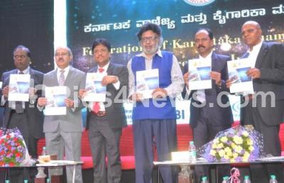Photo Caption : K Ravi, President FKCCI with David Rasquinha, Managing Director, EXIM Bank, Anil Khaitan, President, PHD Chamber of Commerce and Industry and others releasing the souvenir during the FKCCI Export Excellence Awards 2018 at FKKCI Office, in Bengaluru on Friday 15th June 2018
