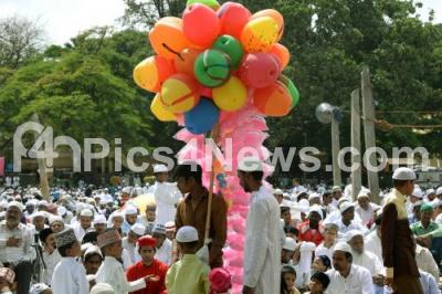 Photo Caption : Children seen buying balloons during Ramzan prayer on the occasion of Eid ul Fitr at Mysuru Road Eidgah ground, in Bengaluru on Saturday 16th June 2018