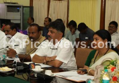 Photo Caption : Ministers DK Shivakumar and Jayamala with Mayor Sampath Raj, addressing a meeting on the Kempegowda Jayanti Celebration at Conference Hall, Vidhan Soudha, in Bengaluru on Wednesday 20th June 2018