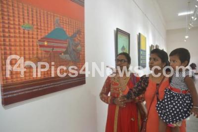 Visitors seen at the contemporary painting exhibition “Matsya” by Ganesh S Saboji, at Rangoli Metro Art Center at MG Road, in Bengaluru on Friday 22nd June 2018