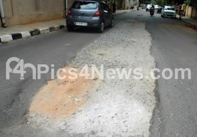 Photo Caption : Recently Benson Cross Road and Bore Bank road witnessed digging up for laying of pipeline which was covered shabbily with loose mud and jelly and tarred, but since then the road has caved in all along Benson Cross road and Bore Bank Road, in Bengaluru on Friday 22nd June 2018