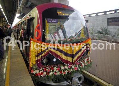 Photo Caption : 6 coach Metro train was flagged off at Byappanahalli station, in Bengaluru on Friday 22nd June 2018