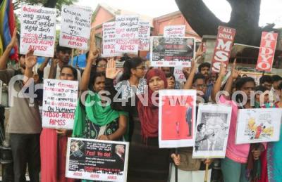 Event Description : Members of AIDSO, AIMSS staging a protest, condemning the US anti immigration policy of separating children from immigrant parents, protest was held at SBM Circle, in Bengaluru on Saturday 23rd June 2018