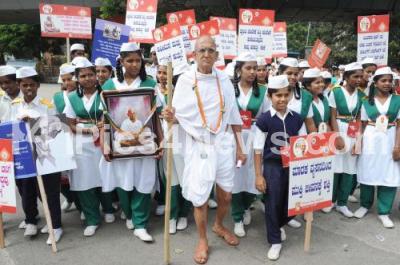 Photo Caption : School students participating in awareness rally from Gandhi Statue to Gandhi Bhavan say no drugs on the occasion of International Day against Drug Abuse and Illicit Trafficking, in Bengaluru on Tuesday 26th June 2018