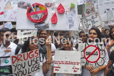 Photo Caption : College students participating in awareness on say no drugs on the occasion of International Day against Drug Abuse and Illicit Trafficking, in Bengaluru on Tuesday 26th June 2018