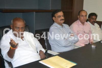 Photo Caption : JDS Supremo and Former PM HD Devegowda, addressing a meeting with Karnataka State JDS leaders at JDS Office, in Bengaluru on Tuesday 26th June 2018