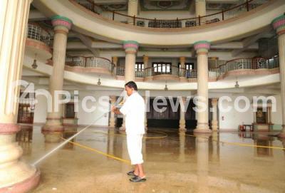 Photo Caption : Worker seen cleaning the Vidhana Soudha lobby, in preparation for the upcoming Joint Assembly Session, in Bengaluru on Wednesday 27th June 2018