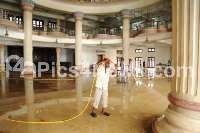Photo Caption : Worker seen cleaning the Vidhana Soudha lobby, in preparation for the upcoming Joint Assembly Session, in Bengaluru on Wednesday 27th June 2018