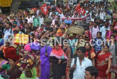 Photo Caption : Members of Karnataka State Government Hostel Contract Workers participated in protest rally from Bengaluru City Railway Station to Freedom Park to fulfill their various demands, in Bengaluru on Wednesday 27th June 2018