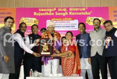 Photo Caption : Governor of Karnataka Vajubhai Vala with Ramesh Mehta, Chairman, Rajasthan Sangh Karnataka, Anil Sankleeha, President, Ratni Bai Mehta, Secretary and others at the inauguration of "Hasya Kavi Sammelan" organised by Rajasthan Sangh Karnataka at Palace Grounds, in Bengaluru on Sunday 1st July 2018