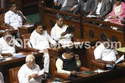 Photo Caption : Chief Minister of Karnataka HD Kumarswamy, Ministers and MLAs during Joint Session at Vidhana Soudha, in Bengaluru on Monday 2nd July 2018
