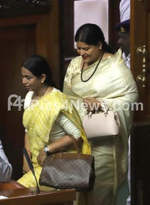 Photo Caption : Minister Jayamala and MLA Lakshmi Hebbalkar seen arriving to Joint Session at Vidhana Soudha, in Bengaluru on Monday 2nd July 2018