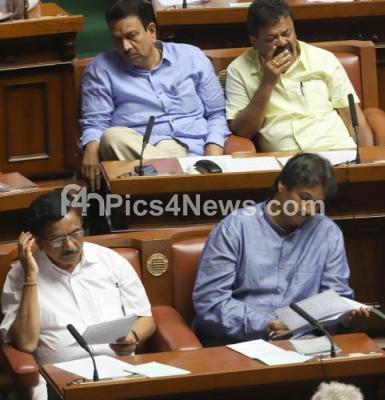 Photo Caption : BJP MLAs seen at the Joint Session at Vidhana Soudha, in Bengaluru on Monday 2nd July 2018