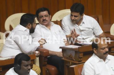 Photo Caption : Minister Zameer Ahmed Khan seen with MLA B Nagendra and MLC Rizwan Arshad during joint session at Vidhana Soudha, in Bengaluru on Monday 2nd July 2018