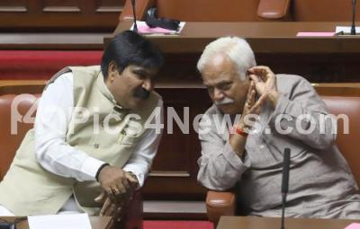 Photo Caption : Ministers R V Deshpande and Shankar during Council session at Vidhana Soudha, in Bengaluru on Wednesday 4th July 2018