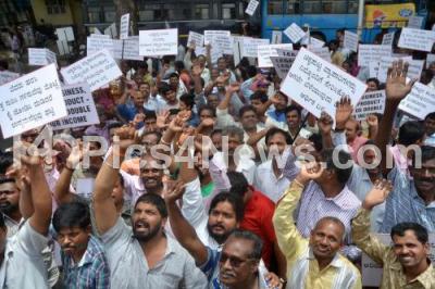 Members of Federation of Retails Association of India protesting to fulfill their demands at Freedom Park, in Bengaluru on Wednesday 4th July 2018