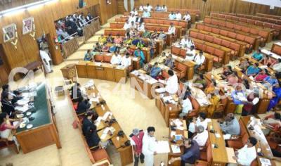 Photo Caption : BBMP Mayor Sampath Raj with Deputy Mayor Padmavathi, BBMP Commissioner Manjunath Prasad during BBMP council meeting at BBMP, in Bengaluru on Saturday 7th July 2018