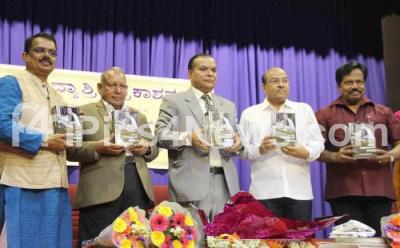 Photo Caption : Justice N Kumar with Dr Gururaj Karajagi, Chairman, Academy for Creative Teaching, Film Director T S Nagarabharana and Book Author Ma Su Mannar Krishna releasing "Sardar Vallabai Patel" book at Gayana Samaj, in Bengaluru on Sunday 8th July 2018