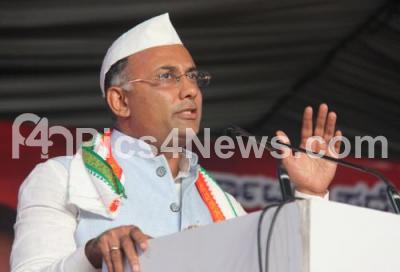 Newly appointed KPCC President Dinesh Gundu Rao addressing after taking charge as the KPCC president at Palace Grounds, in Bengaluru on Wednesday 11th July 2018