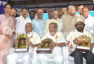 Photo Caption : Veerashaiva Lingayat Ministers and MLAs being felicitated during the Akhila Bharatha Veerashaiva Mahasabha at Konadajji Basappa Auditorium, in Bengaluru on Wednesday 11th July 2018